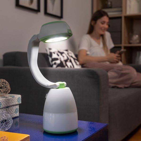 • Įkraunamas, nešiojamas: įkraunama vidinė baterija (universalus C prievadas) leidžia lengvai nešiotis ir naudoti bet kur ir bet kada. Jis taip pat gali būti naudojamas kaip avarinis maitinimo blokas (1500 mAh), nes jame yra USB prievadas mobiliajam telefonui ar kitiems įrenginiams įkrauti. Komplekte yra USB-C laidas.