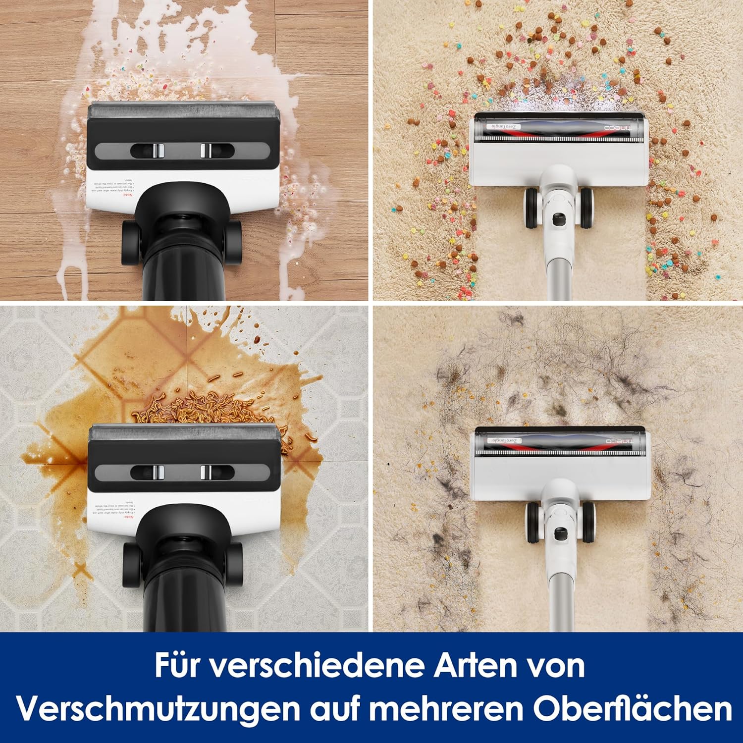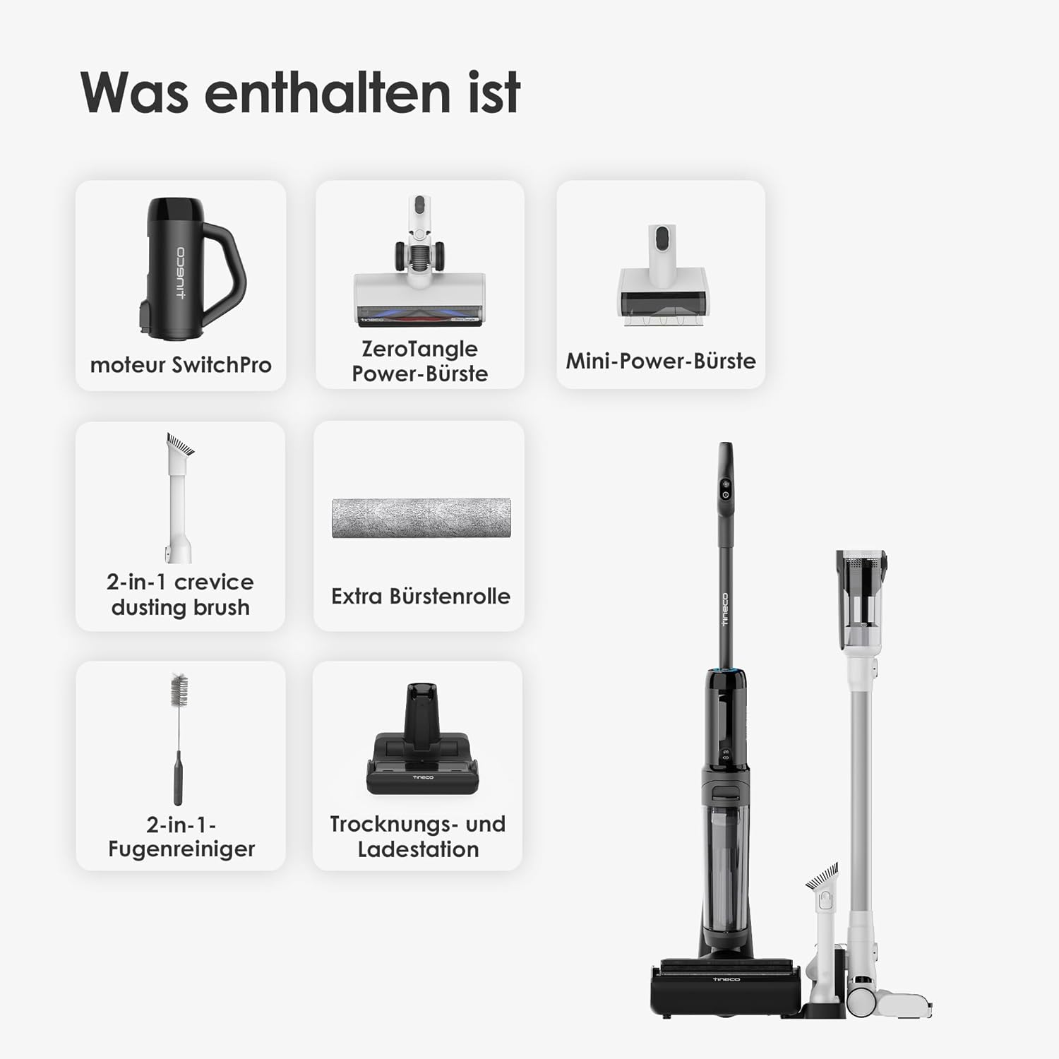 Lengvas grindų plovimo ir dulkių siurbimo funkcijų keitimas užtikrina geriausią ir universaliausią visų namų, įskaitant virtuvę ir vonios kambarius, valymo sprendimą. Komplektacijoje yra įvairių priedų minkštiems paviršiams, tarpams ir sunkiai pasiekiamoms vietoms valyti.