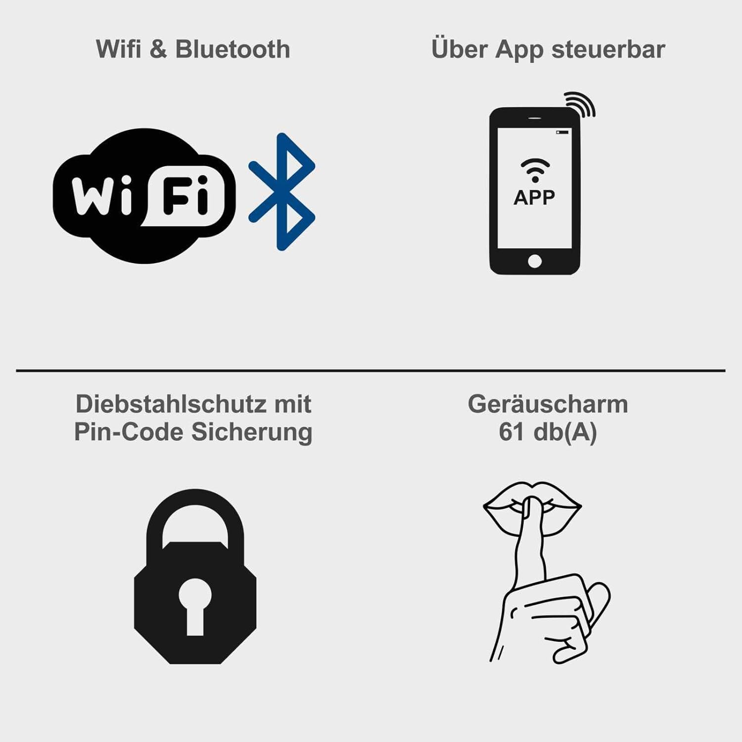 Integruota apsauga nuo vagystės PIN kodu, skaitmeninis ekranas su intuityvia klaviatūra, valdymas programėle per „WiFi“ ir „Bluetooth“, paprastas programinės įrangos atnaujinimas per USB sąsają